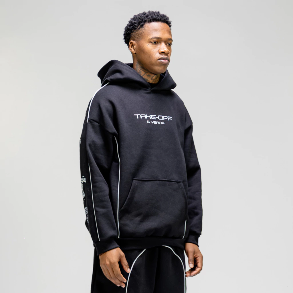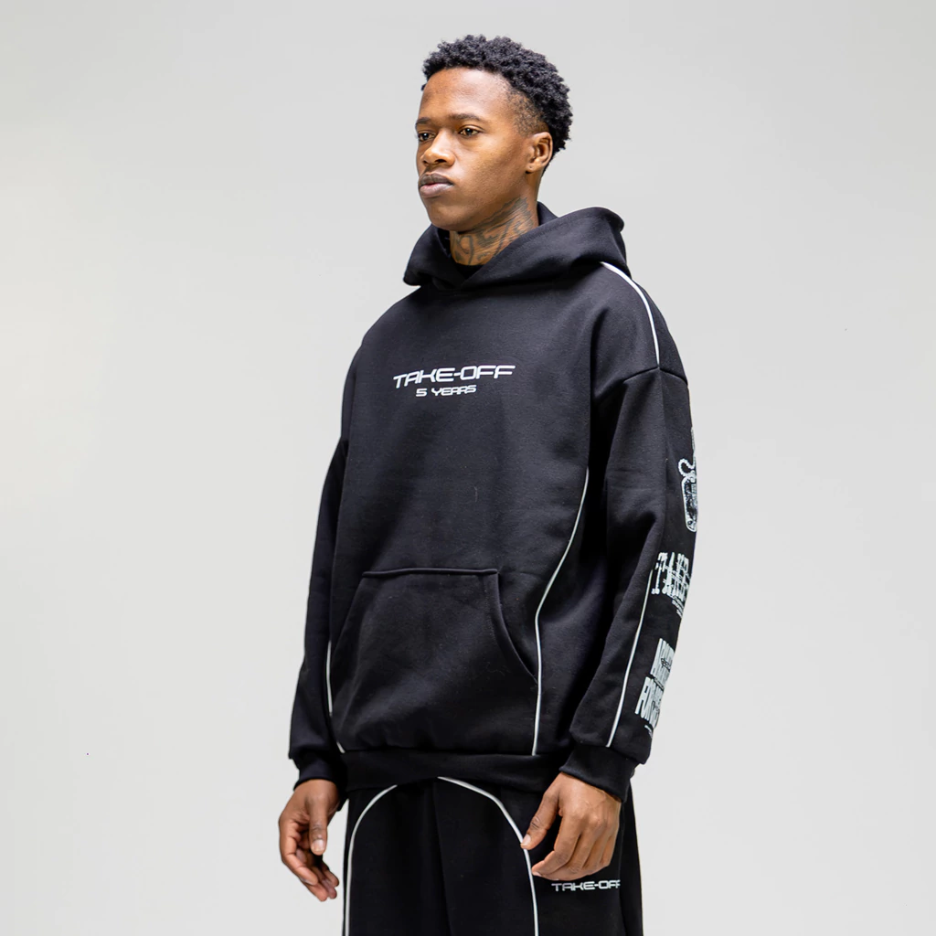 5y Black Hoodie é um moletom confeccionado com modelagem ampla e foco em um caimento perfeito ao corpo.