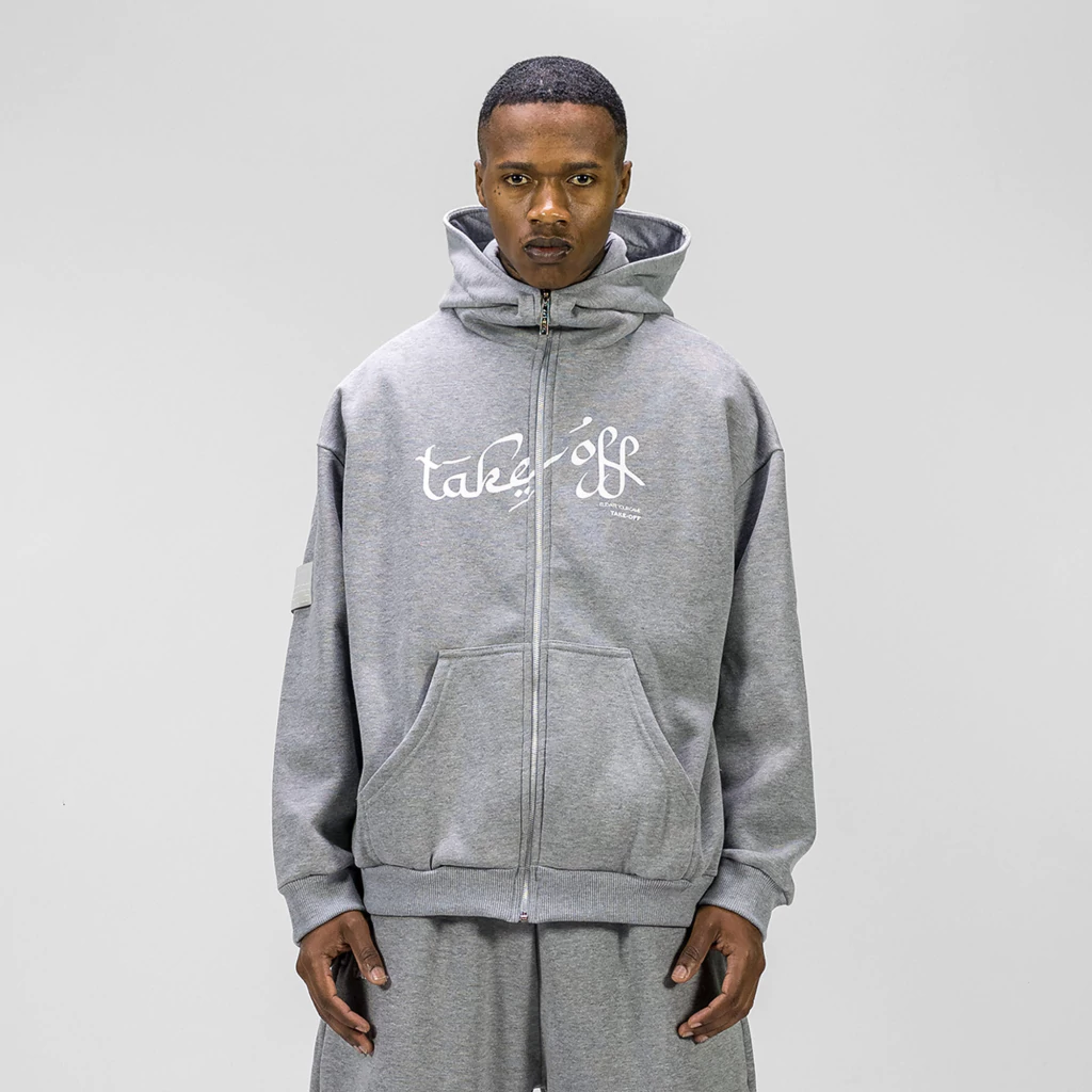 Tem capuz em modelagem ampla, zíper e puxador personalizado.